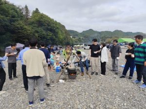 秋川橋河川公園バーベキューランドで開催された合同芋煮会に参加しました。研究室の卒業生が集まってくれました。